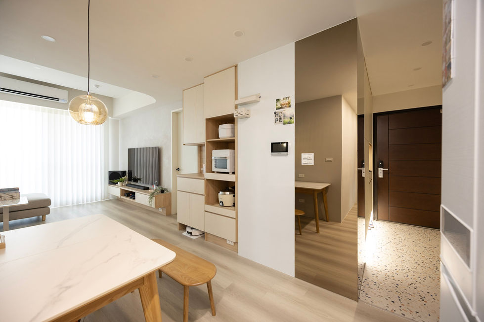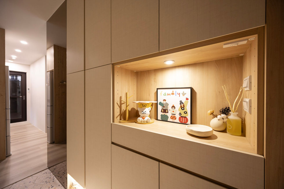 花磚、藝術漆、圓弧造型天花、珐瑯板、茶鏡、LED燈